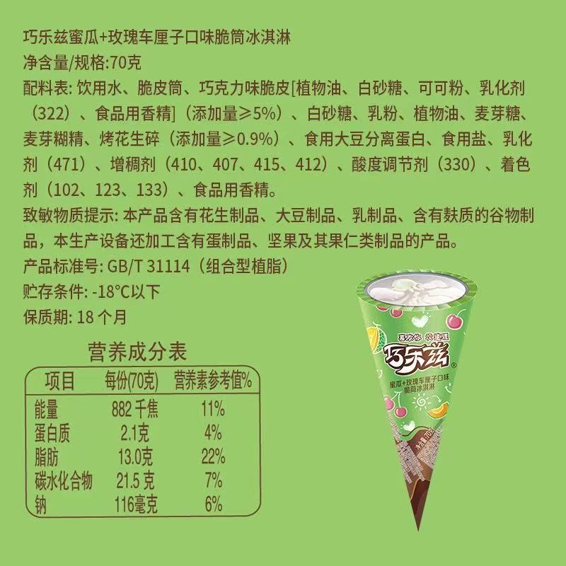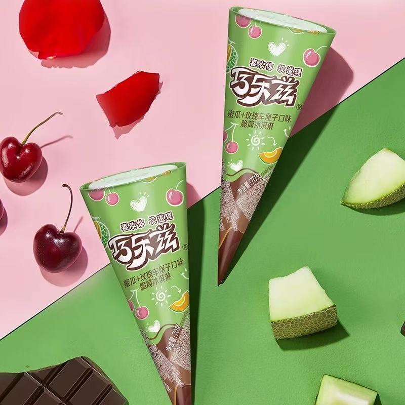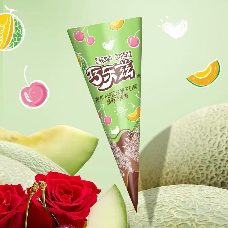伊利巧乐兹蜜瓜+玫瑰车厘子口味脆筒冰淇淋 70g