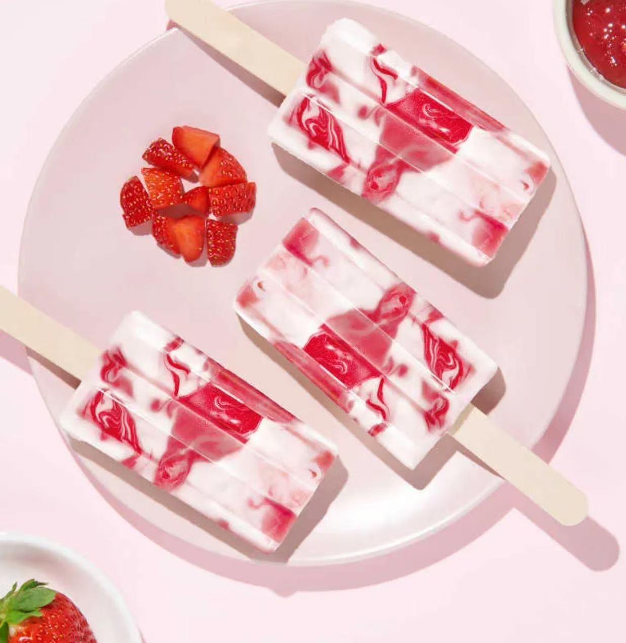 肉眼可见的大面积草莓果肉果酱,臻选丹东草莓,优选3.8倍蛋白浓缩乳