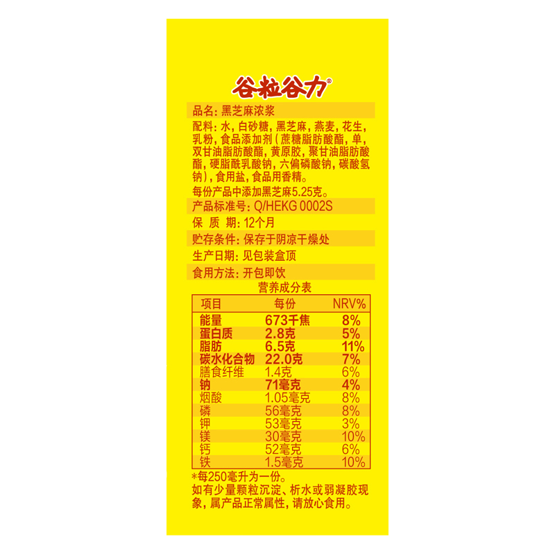 谷粒谷力黑芝麻浓浆250ml
