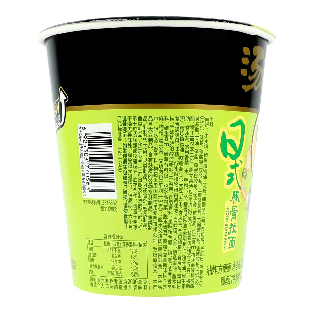 统一汤达人日式豚骨拉面杯 83g