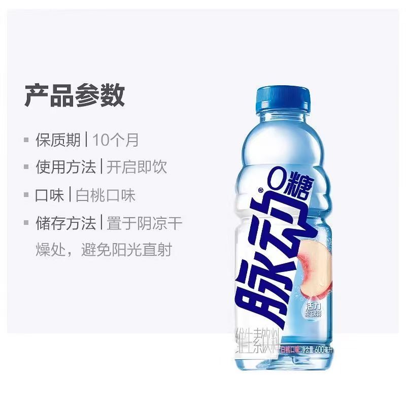 脉动维生素饮料白桃味0糖0脂600ml/瓶