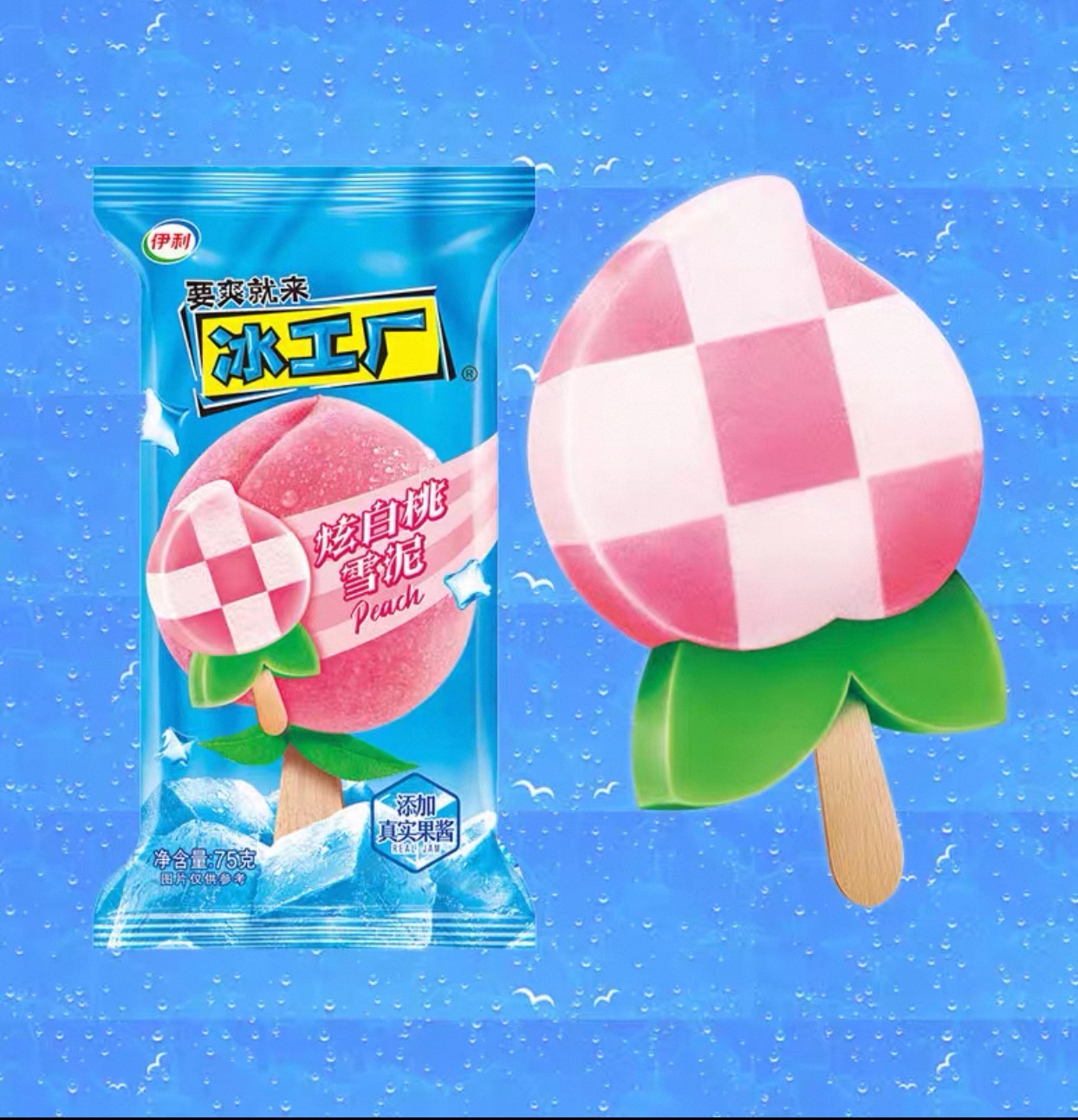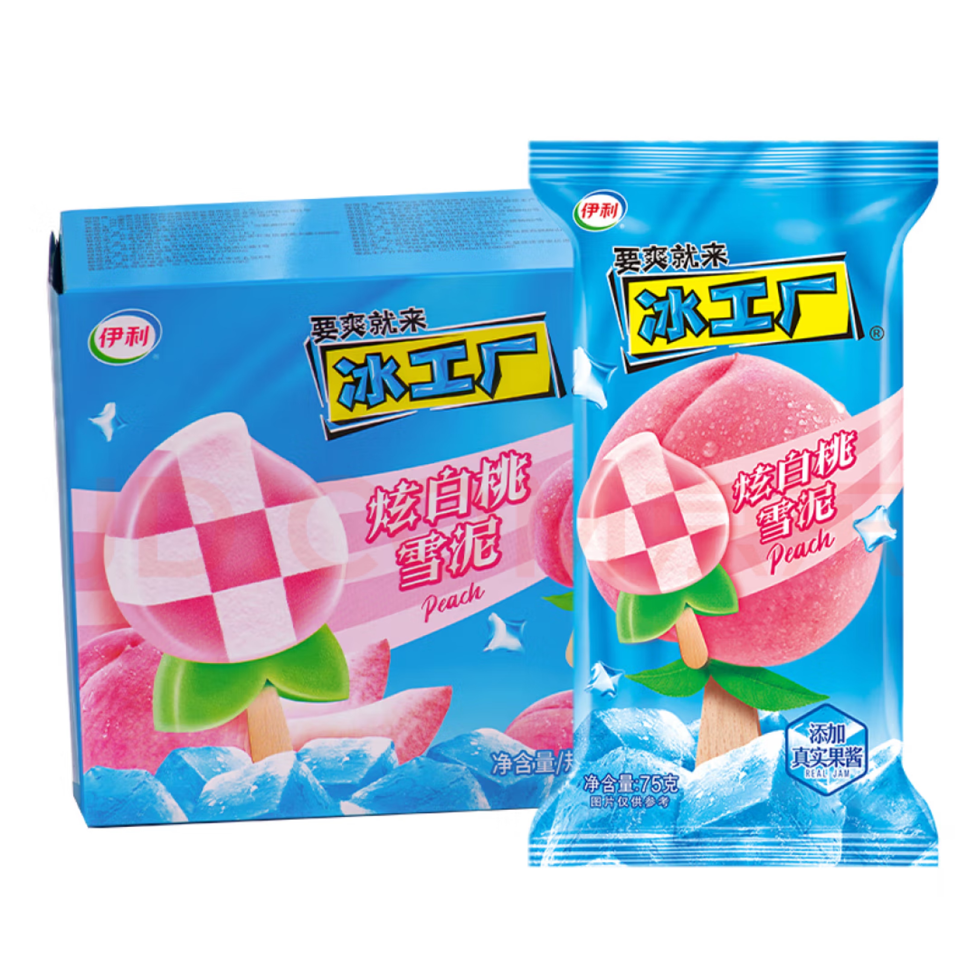 伊利冰工厂炫白桃雪泥味雪糕 75克